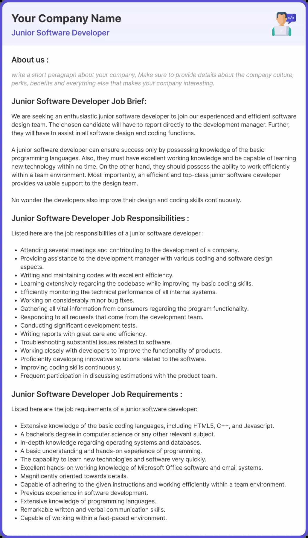 Junior Software Engineer CV Sample Guide Entry Level Senior online, Junior Software Developer Resume Examples for 2024 Resume Worded online, 5 Junior Software Engineer Resume Examples for 2024 online, Junior Software Developer CV example guide Get hired online, Junior Software Engineer Template in 2024 ResumeKraft online, Best Junior software development courses online Online software online, Junior Software Developer Job Description online, Junior Software Developer Resume Sample in 2024 ResumeKraft online, Junior Software Developer Resume Blog 2023 Guide with 10 Examples online, Junior Software Developer job description template TalentLyft online, 3 tips to Boost your productivity as a Junior Software Developer online, A Day in the Life of a Junior Software Developer Nasreen Mohammed online, 5 Junior Software Developer Resume Examples Guide for 2024 online, How to Avoid Mistakes as a Junior Software Developer Launch Academy online, Junior Software Developer Resume Samples QwikResume online, 5 Junior Software Developer Resume Examples Guide for 2024 online, 3 Junior Software Developer Resume Examples How To Guide for 2023 online, 3 Junior Software Developer Resume Examples How To Guide for 2023 online, Junior Software Engineer Resume Example Resume Professional Writers online, What Makes You A Junior Web Developer or Jr Software Engineer devsLife online, Junior Software Developer Resume Sample in 2024 ResumeKraft online, Junior Software Developer Resume Samples Velvet Jobs online, Junior Software Developer Job Description online, Junior software developer CV sample resume writing curriculum online, 3 Months Junior Software Developer Course at best price in Lucknow online, Junior Software Developer Resume Blog 2023 Guide with 10 Examples online, How much does a junior software developer earn Quora online, Kickstart Your Software Developer Career with These Resume Examples online, Junior Software Developer XITASO online, JUNIOR SOFTWARE DEVELOPER WHAT YOU NEED TO KNOW AssureSoft online, Junior Software Engineer Resume Example Resume Professional Writers online, Junior Software Developer Cover Letter Examples QwikResume online, Junior Software Developer Resume Sample MintResume online, Junior Software Engineer Resume Template in 2024 ResumeKraft online, TOP 10 MUST HAVE as a Junior Software Developer online.