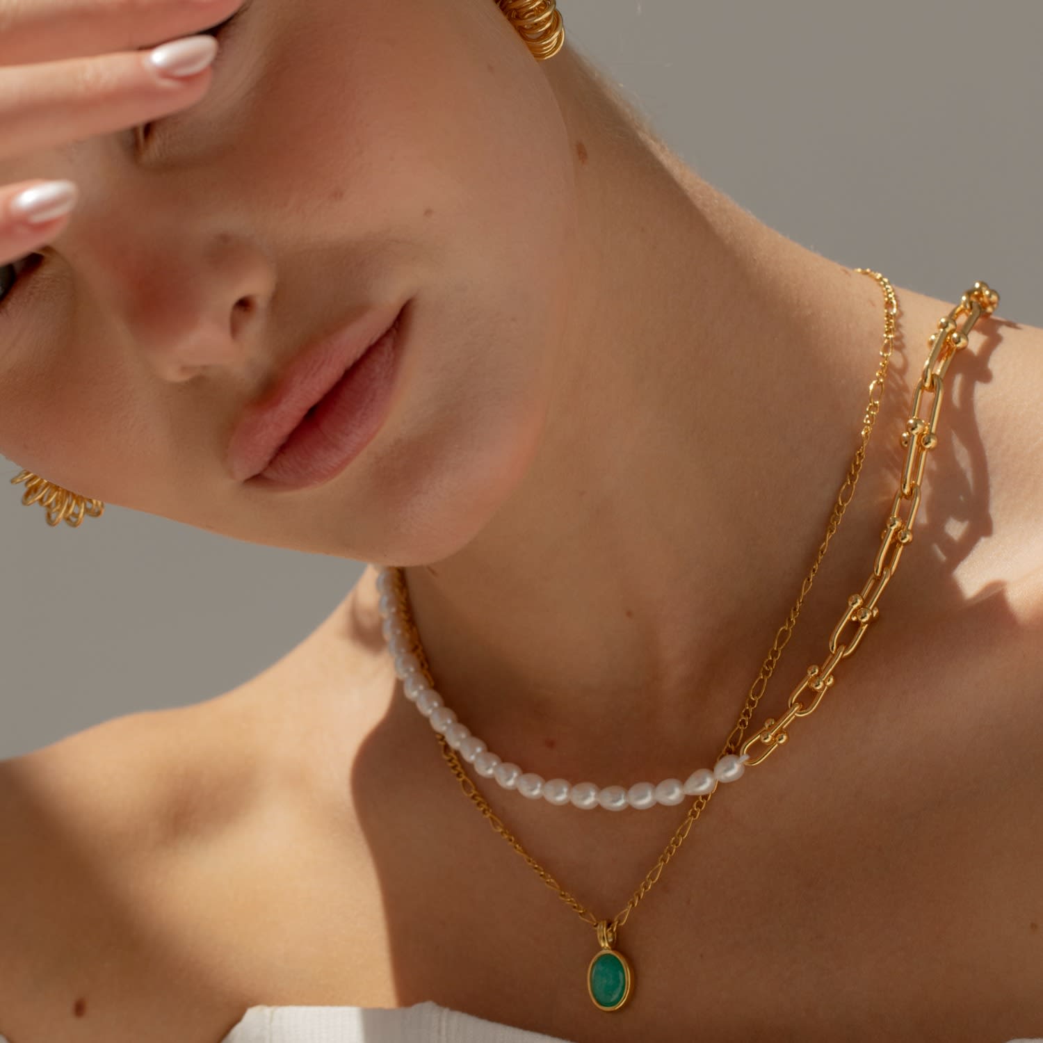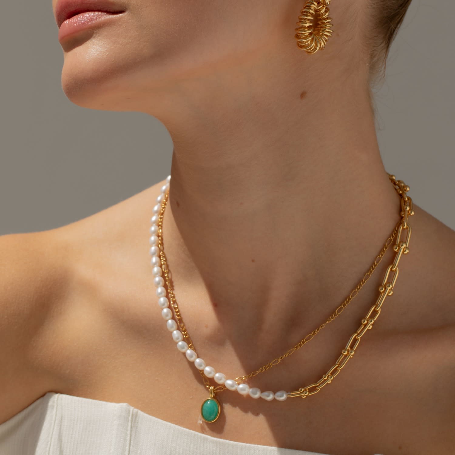 Half pearl half gold chain online necklace